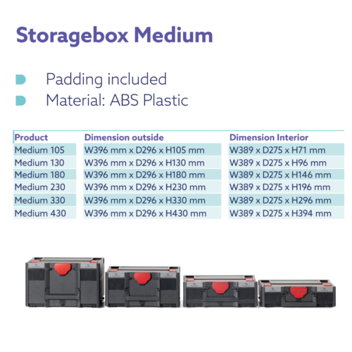 The storges boxes come in 3 standard sizes Medium, Large and XXLarge. These sizes indicate the width of the box. Within the sizes, the boxes have different heights